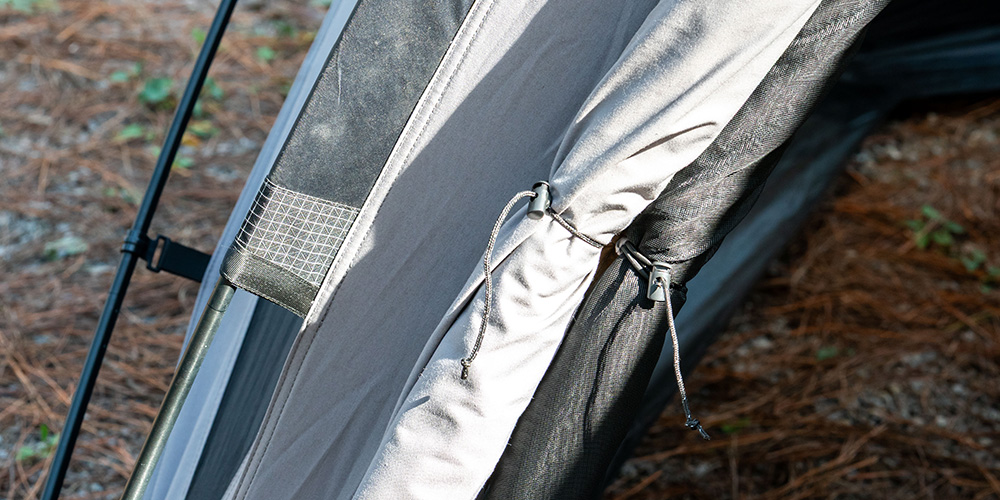 The three doors are double-layer design, and No-see-um bug mesh on all doors and vents.