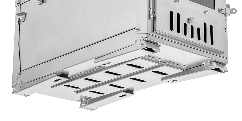 After the stove has been burned for many times, the bottom of the firebox will be partially warped (Caused by thermal expansion and contraction), but under the action of the external reinforced plate, the whole firebox is still in a state of no deformation, which is convenient for the next installation and use.