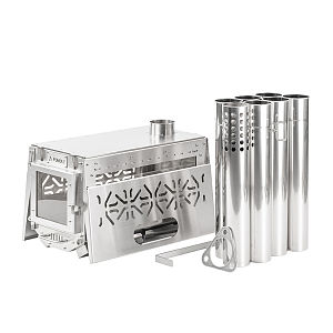 The Oroqen 3 Wood Stove is designed for pickup truck camping and winter tent camping. Rectangular firebox and inverted trapezoid drawer type ash box, three viewing windows, side glass air wall and X-shaped folding 4-leg design. All these are its highlights. Oroqen tent stove is made of quality wire drawing 304 stainless steel, the Oroqen tent wood stove is an perfect heating and cooking gear in POMOLY tents and other winter shelters.