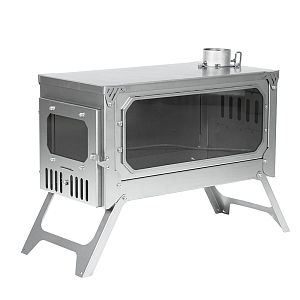 T-Brick Ultra Collapsible Wood Stove has a door with a slidable air intake and an octagonal glass, so that you can fine-tune the burn rate.